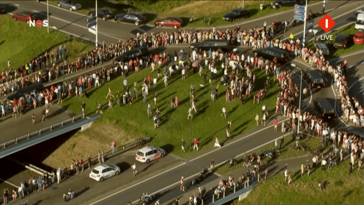 Ik weet niet hoor. Al die mensen die langs de weg staan met hun camera. Ziet er meer uit als ramptoerisme zo.