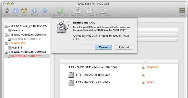 Ik heb in mijn computer twee extra 3TB's zitten in een Raid 1-setup en om een onbekende reden is één van de schijven er mee op gehouden. Na wat rommelen met de kabeltjes en schuiven met SATA-poorten doen beide schijven het weer, verify disk geeft geen problemen. Nu krijg ik onderstaande melding te zien als ik de RAID1-setup wil herstellen.