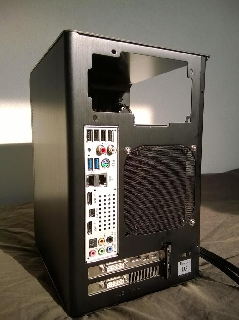 De kast die wordt gebruikt is een Cooltek (Jonsbo) U2 Window. Een zeer simplistisch kastje met ruimte voor een Mini ITX moederbordje, een flinke CPU cooler, een 220 mm lange videokaart en een ATX voeding.
