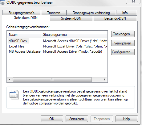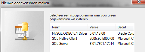 ik heb de odbc connectors gedownload en geïnstalleerd vanop deze site: http://dev.mysql.com/downloads/connector/odbc/5.1.html