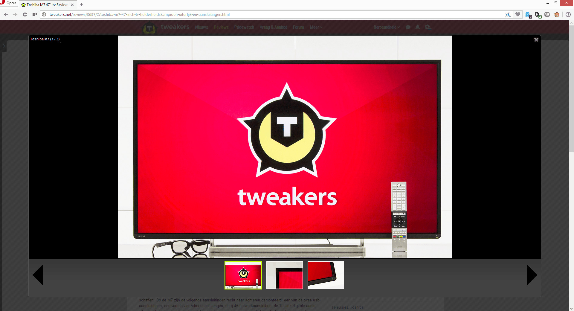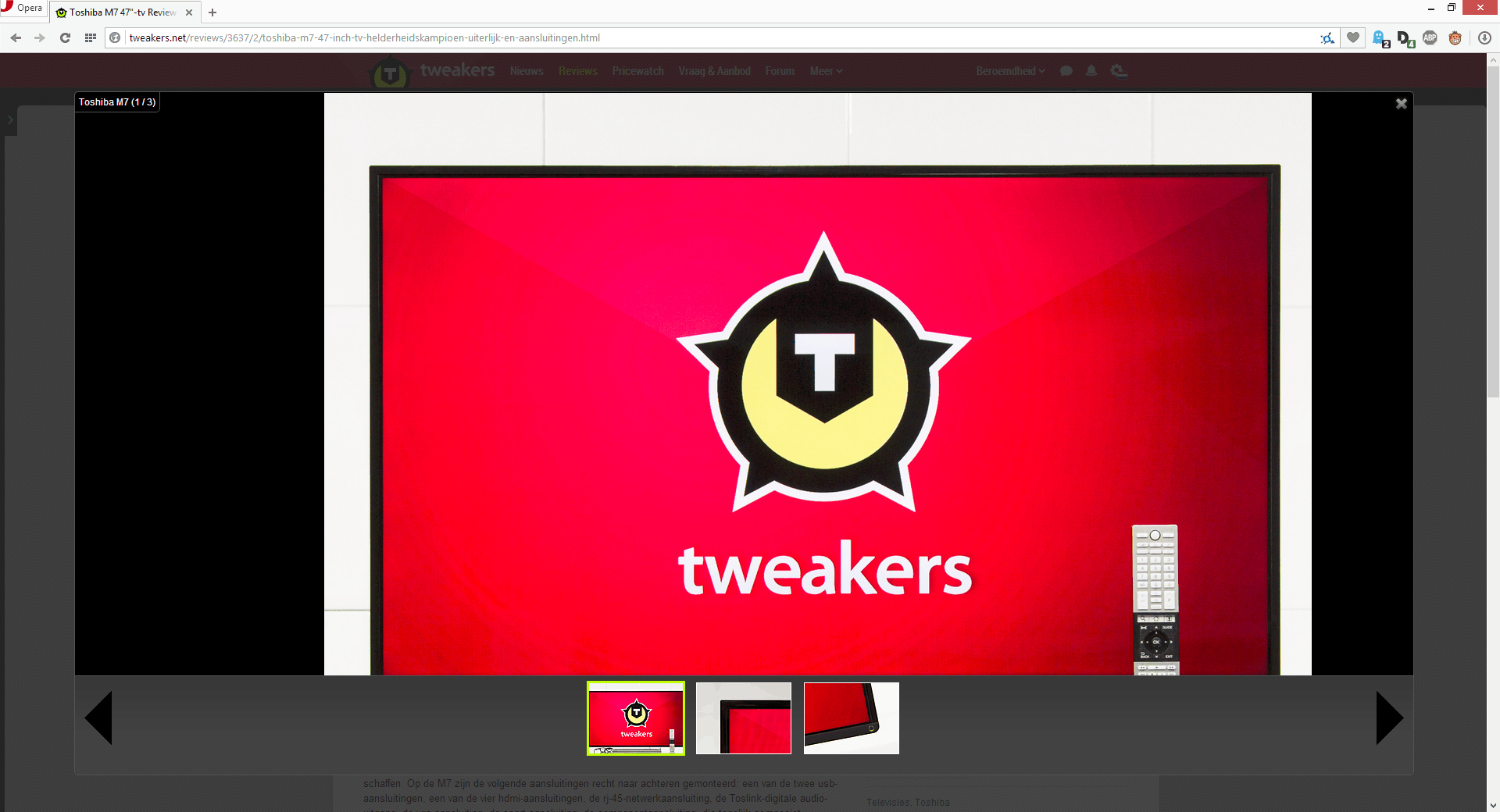 Ik bezoek Tweakers altijd met de browser gehalveerd, d.w.z. dat hij in Windows de helft van het scherm inneemt. Als ik zo een afbeelding bekijk, inzoom (dat vergrootglas met een plusje erin), de browser het volledige scherm laat innemen en dan uitzoom, schaalt de afbeelding niet goed terug. Hier screenshots van de normale view en daarna de verkeerde (klikbaar):
