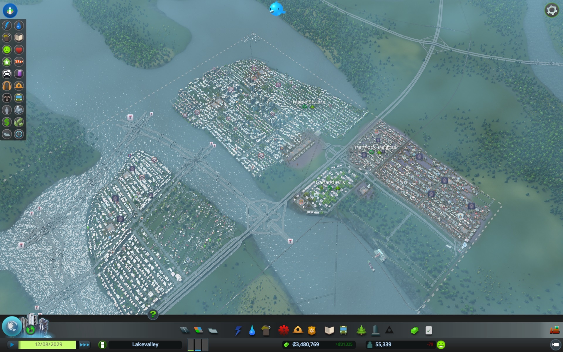Overigens raad ik je aan gewoon door te spelen, je stad steekt op zich niet verkeerd in elkaar. Slopen en herbouwen is juist wel aardig, geeft je stad een meer organische groei imo mocht je problemen tegenkomen. Maar koop een stukje land bij