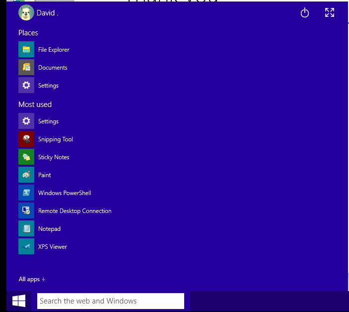 En nu vergeten ze dat weer met deze versie van het Start menu... Als ik hem nu in groot formaat zet zit ik met een groot scherm met één solide kleur en wat tiles... Een beetje transparantie zou al helpen ja, zie de screen shots en video's op bijvoorbeeld de Insider website.