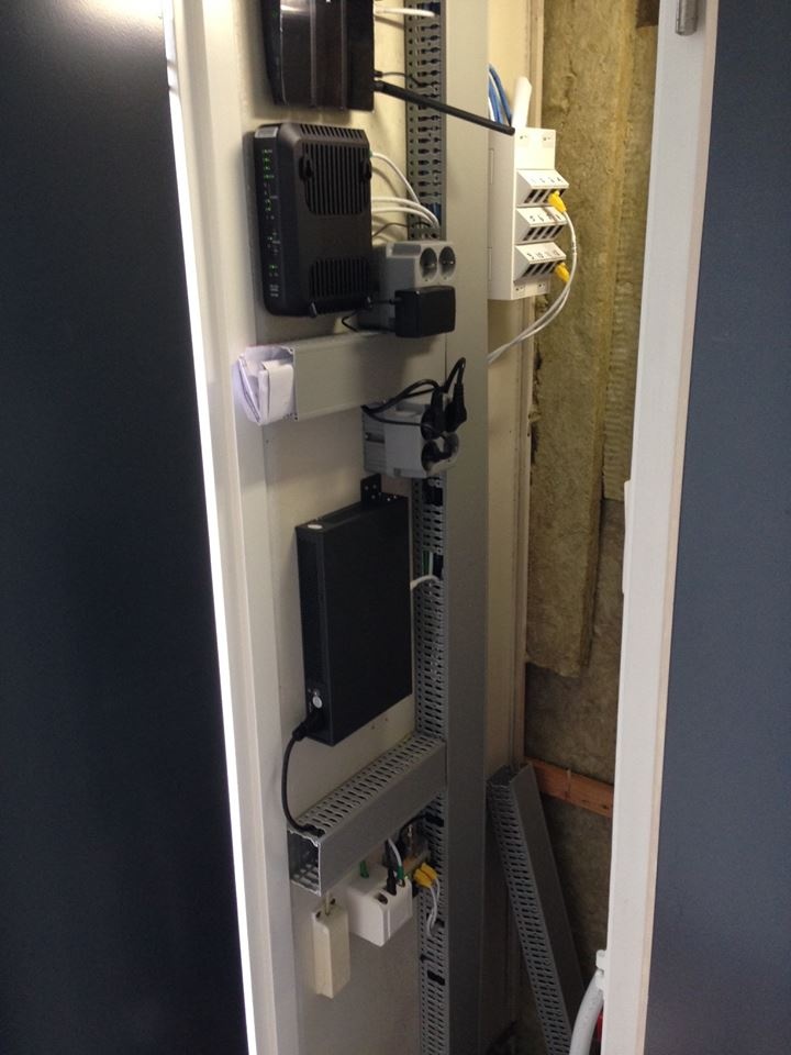 Afgelopen week kwam dan de monteur met de spullen. Hij trekt de meterkast open en zegt nog dat het er mooi uit ziet voor een thuis netwerk. Toen hij klaar was in de meterkast en naar onze TV liep om de mediabox te installeren vroeg hij waar de TV aansluiting zat.