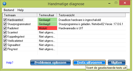 - de intel Wireless Proset diagnose gedraaid waarbij telkens wordt aangegeven dat de Hardware Radio uitstaat