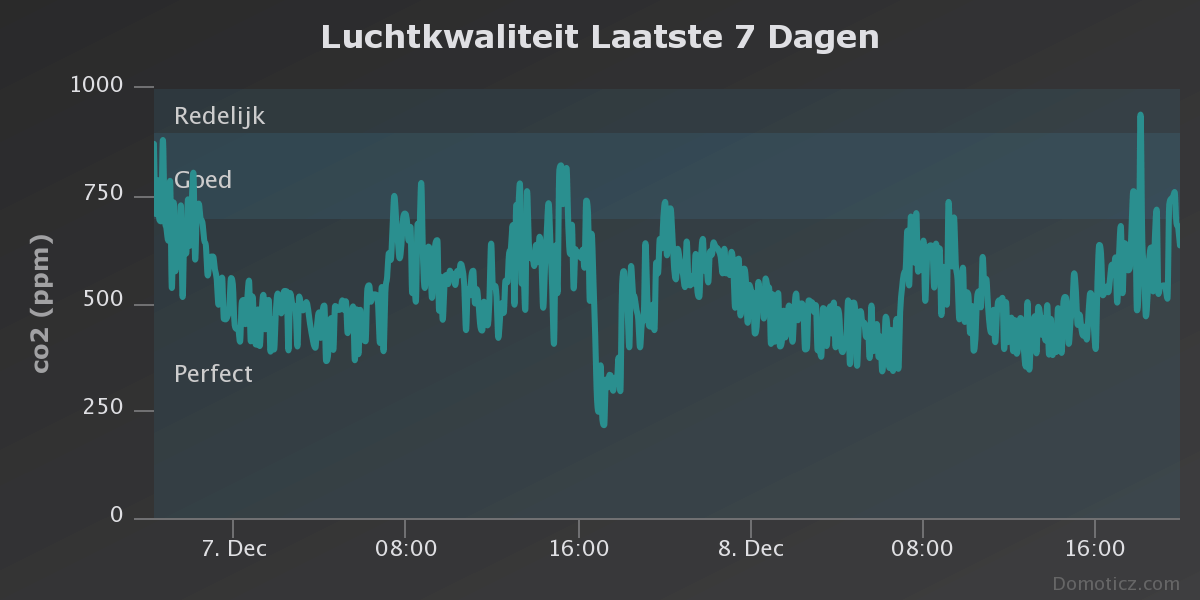 2-waarden trouwens, schone buitenlucht is 400ppm toch? Daar zit jij rond 19:15 ook op. Is trouwens ook wel gek, want volgens de Itho website zit de ondergrens op 600ppm