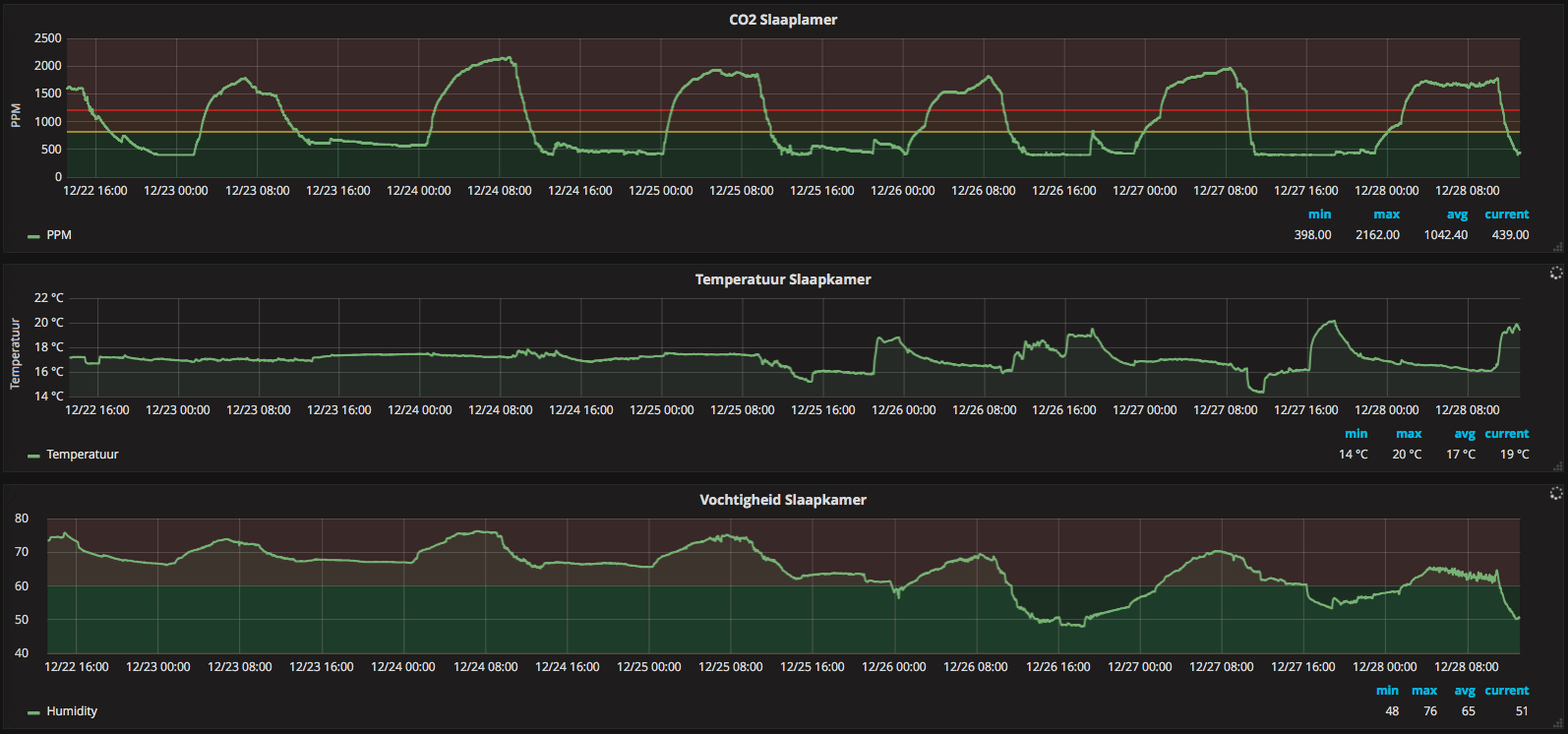 Gemeten met een tSense (gecalibreerd - nog geen 3 weken in gebruik - ABC uitgezet)
