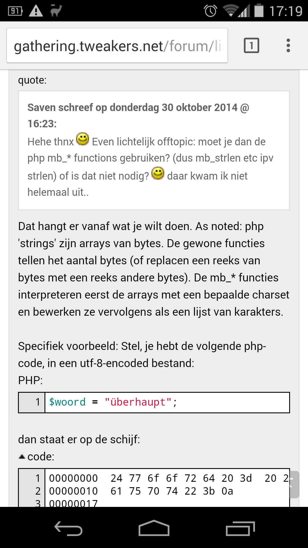 Op mijn Nexus5 komen blokken met code over de knop te staan, waarmee je naar het begin/eind van de pagina kunt springen.