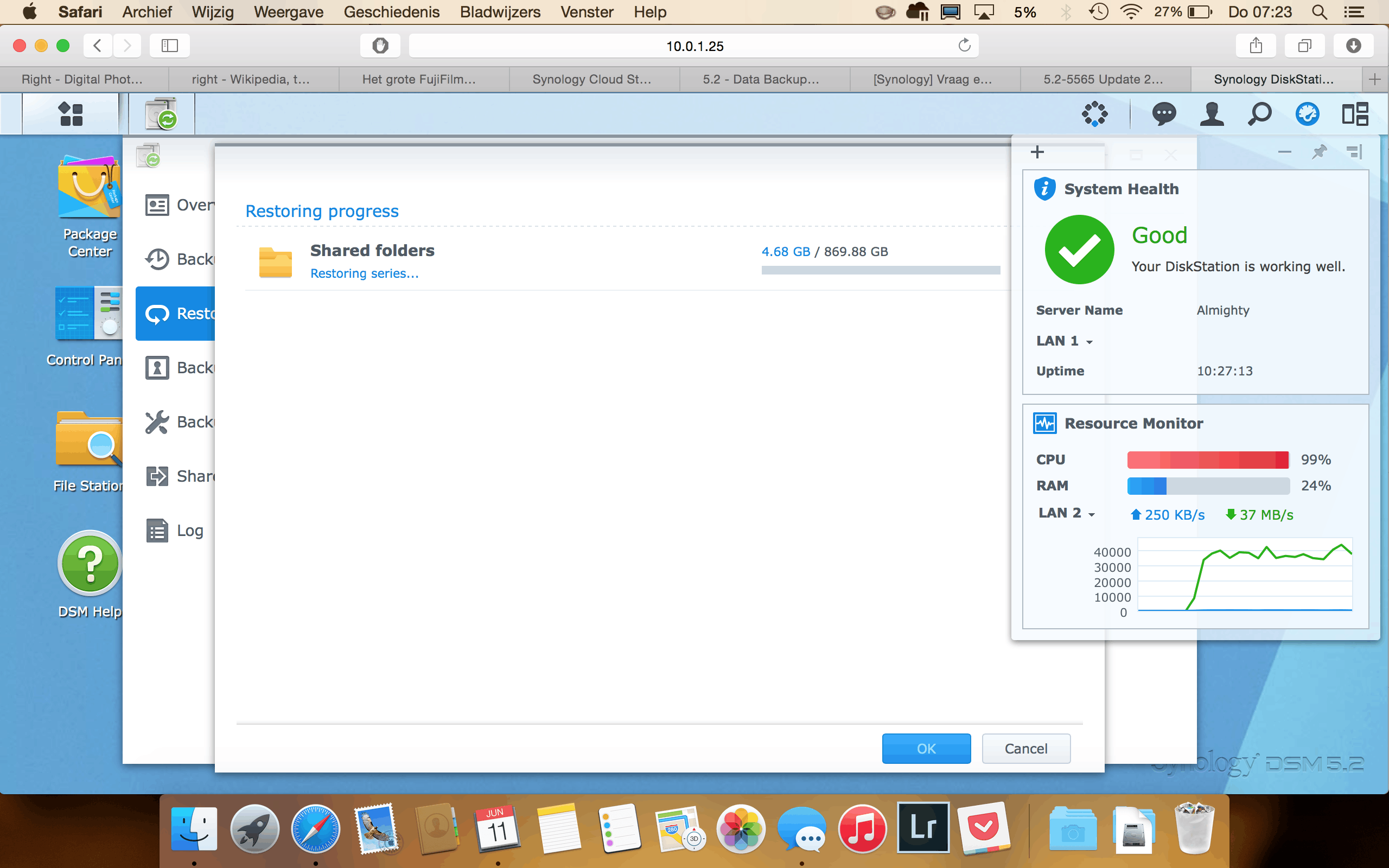 - smb (belangrijkste qua performance) ligt er soms zelfs uit als nzbget en transmission bezig zijn