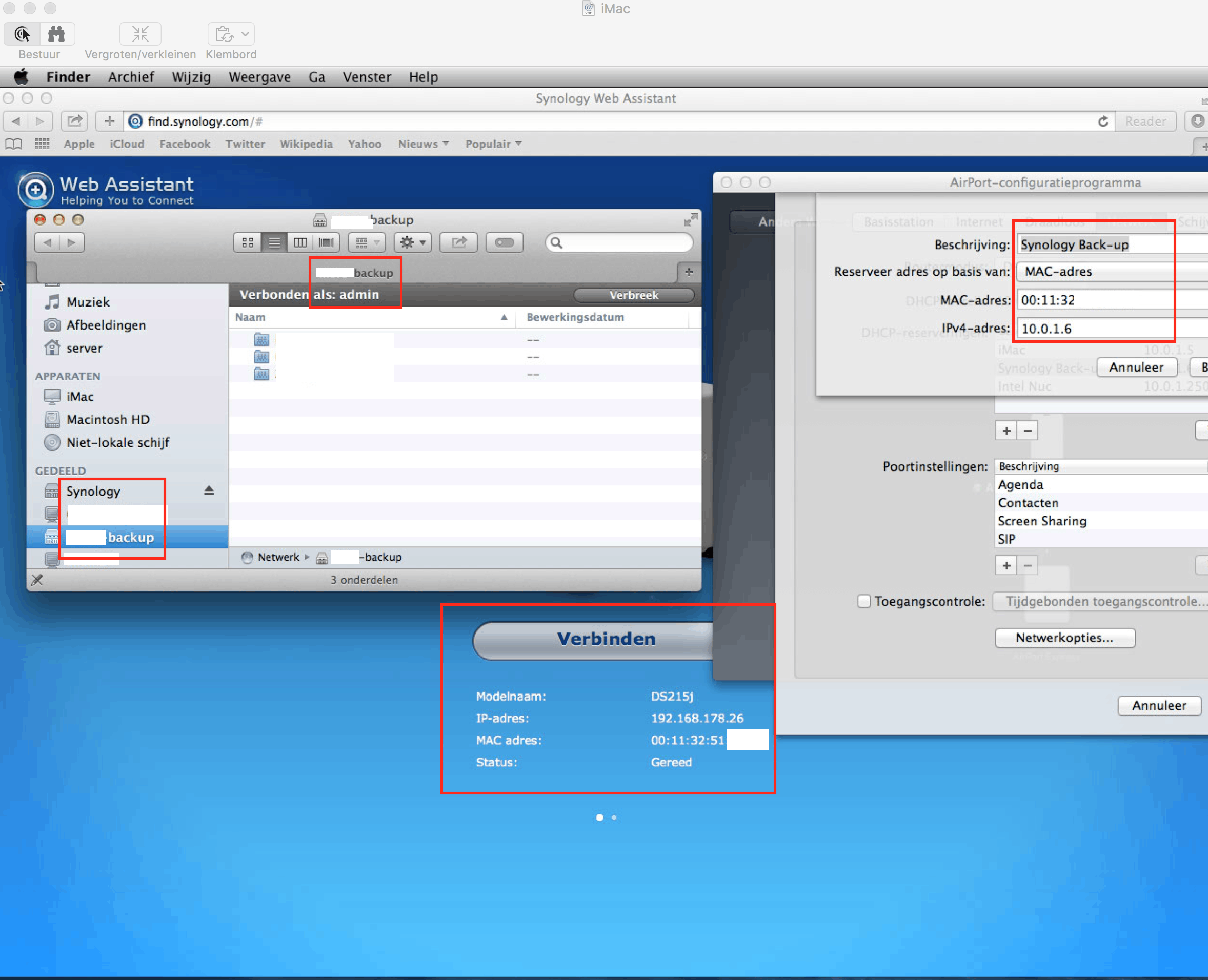 Via find.synology kan ik het apparaat zien en op die manier heb ik het IP adres weten te achterhalen. Als ik op verbinden klinkt kan ik echter geen connectie maken met het apparaat (192.168.178.X:5000 oid). Met Synology 1 kan ik gewoon verbinding maken via 10.0.1.X:5000.