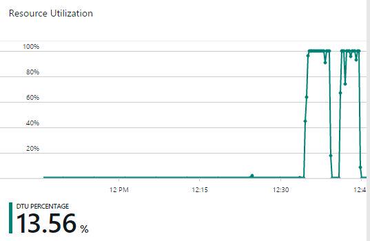 Puur het openzetten van de connectie, dus nog geen query eroverheen sturen, zorgt voor 100% load.En dat is niet bepaald de lichtste SQL database die aangeboden wordt in Azure. Maar goed, lesje geleerd. Volgende keer weer gewoon SSMS aanklikken ipv zo lui zijn.
