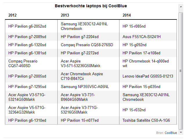 In Chrome staat er netjes een tabelletje, in Firefox (stable) kan ik een paar millimeter heen en weer scrollen.