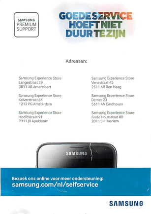 Dat was in de Samsung Experience Store in de Kalverstraat in Amsterdam. Ze kunnen hem daar in de winkel repareren, dat scheelt (verzend)tijd. Maar voor mijn groene Edge moesten ze nog wel de onderdelen bestellen, die hadden ze niet op voorraad.