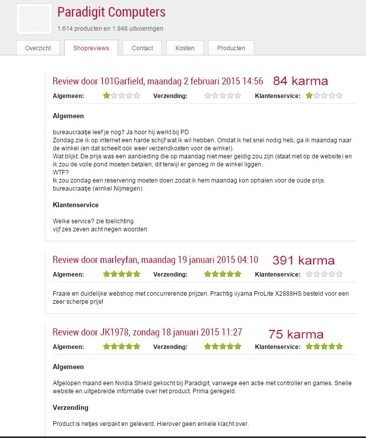 En toen bedacht ik mij (weer) dat het wel erg fijn zo zijn als je het karma van de bijbehorende tweaker kan zien bij de shopreviews.