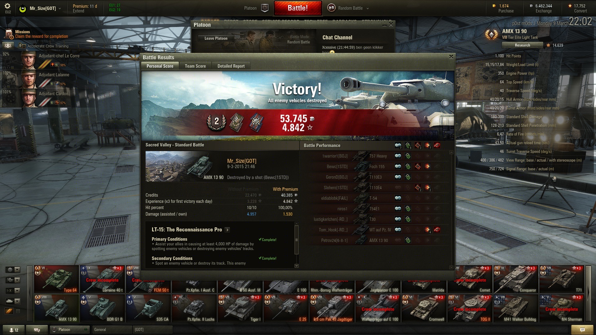 Ik heb 1 keer in mijn Black prince 6k damage blocked gehaald, met 2k damage geschoten en dan nog eens al mijn hp kwijt. Het kan, maar het was zonder arty en met tegenstanders die niet goed wisten wat ze deden. Ik zat toen wel niet op HT-15. Momenteel zit ik op tier 6 van de E-100 en de Maus lijn om die vrouwelijke crew members nog binnen te halen. Ik doe de 4 andere klassen voor de tanks.