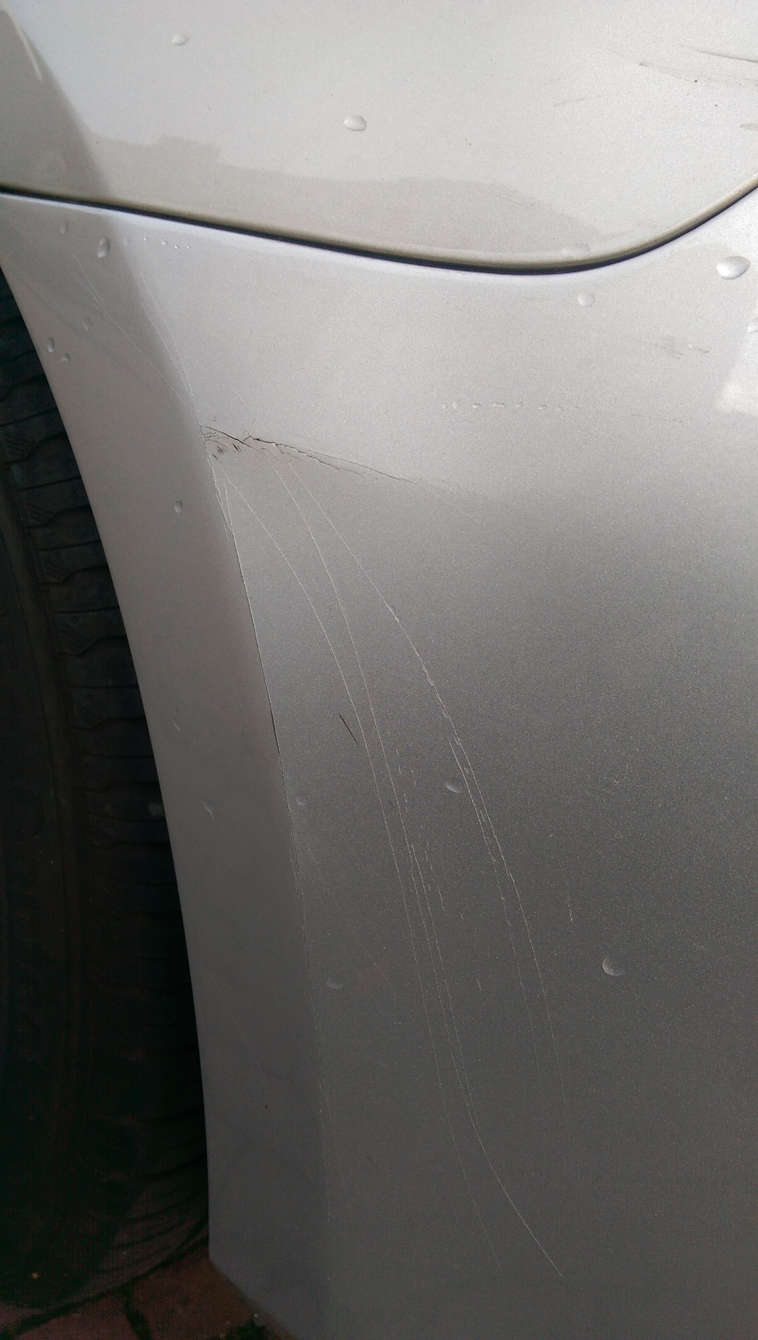 Iets met een overbuurman en de auto niet op de handrem zetten. Dus zijn auto rolde zo boem tegen de mijne aan.