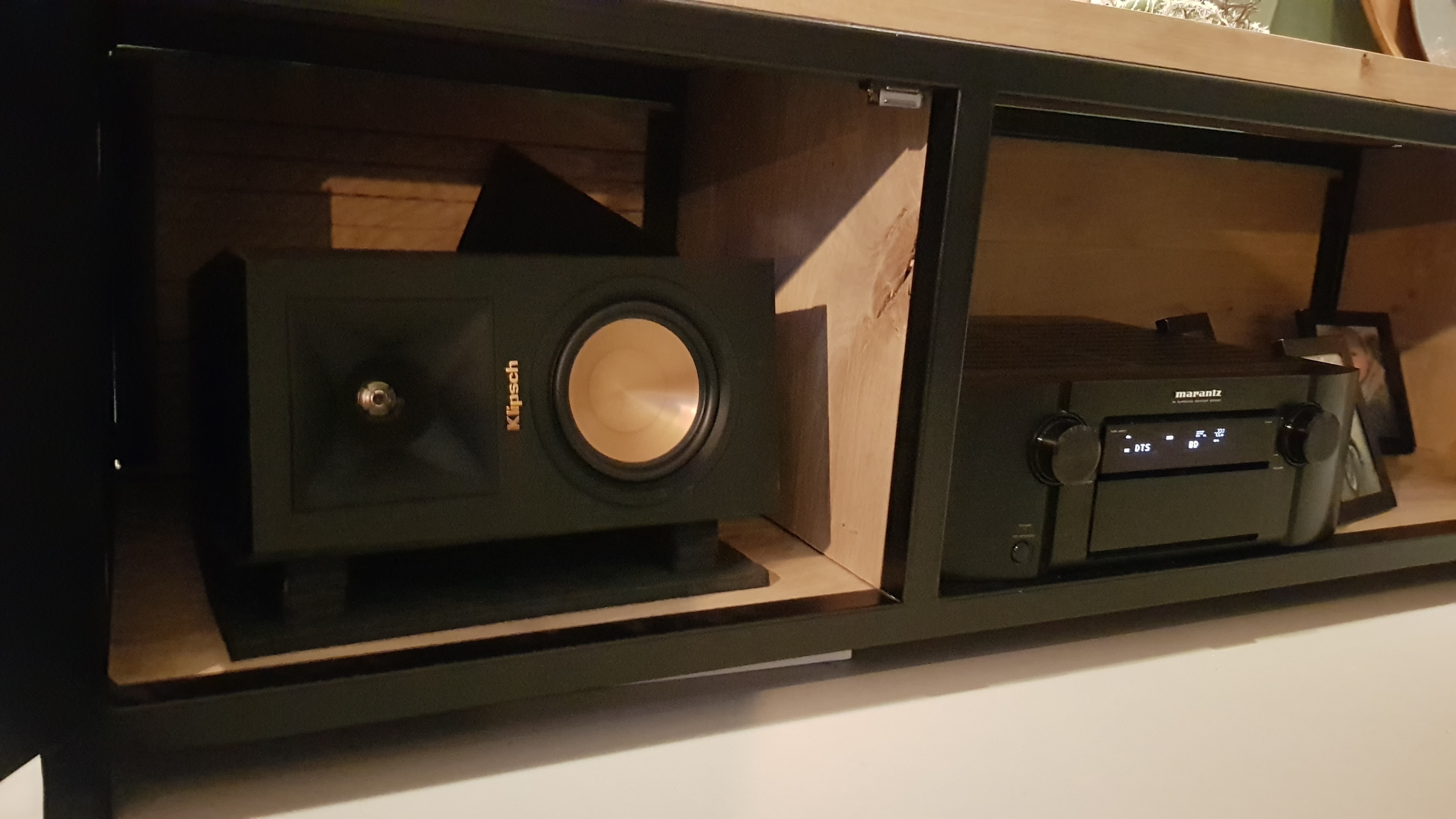 Ik zou trouwens je center speaker wat naar voren halen, zo krijg je vervelende reflecties van het meubel.