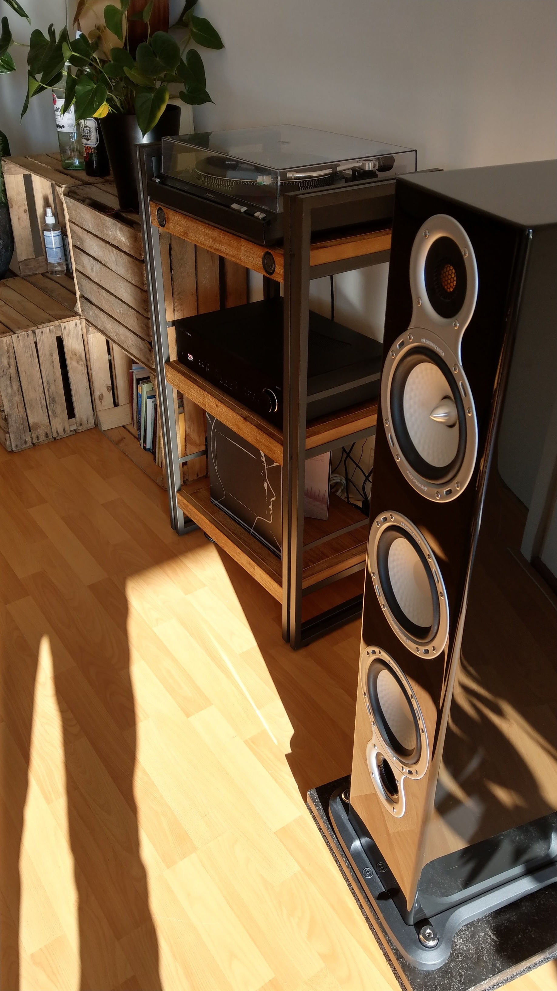 Uiteindelijk de knoop doorgehakt en alles verkocht. Het geld ging naar apparatuur puur bestemd voor het mooi weergeven van stereo. Tweedehands kon ik voor een nette prijs de Monitor Audio GS60 in piano zwart overnemen. Wat een prachtige, gedetailleerde sound komt er uit deze geweldenaars! De missus moest even wennen aan het formaat maar bleek na een luistersessie overtuigd. Monitor Audio is here to stay.