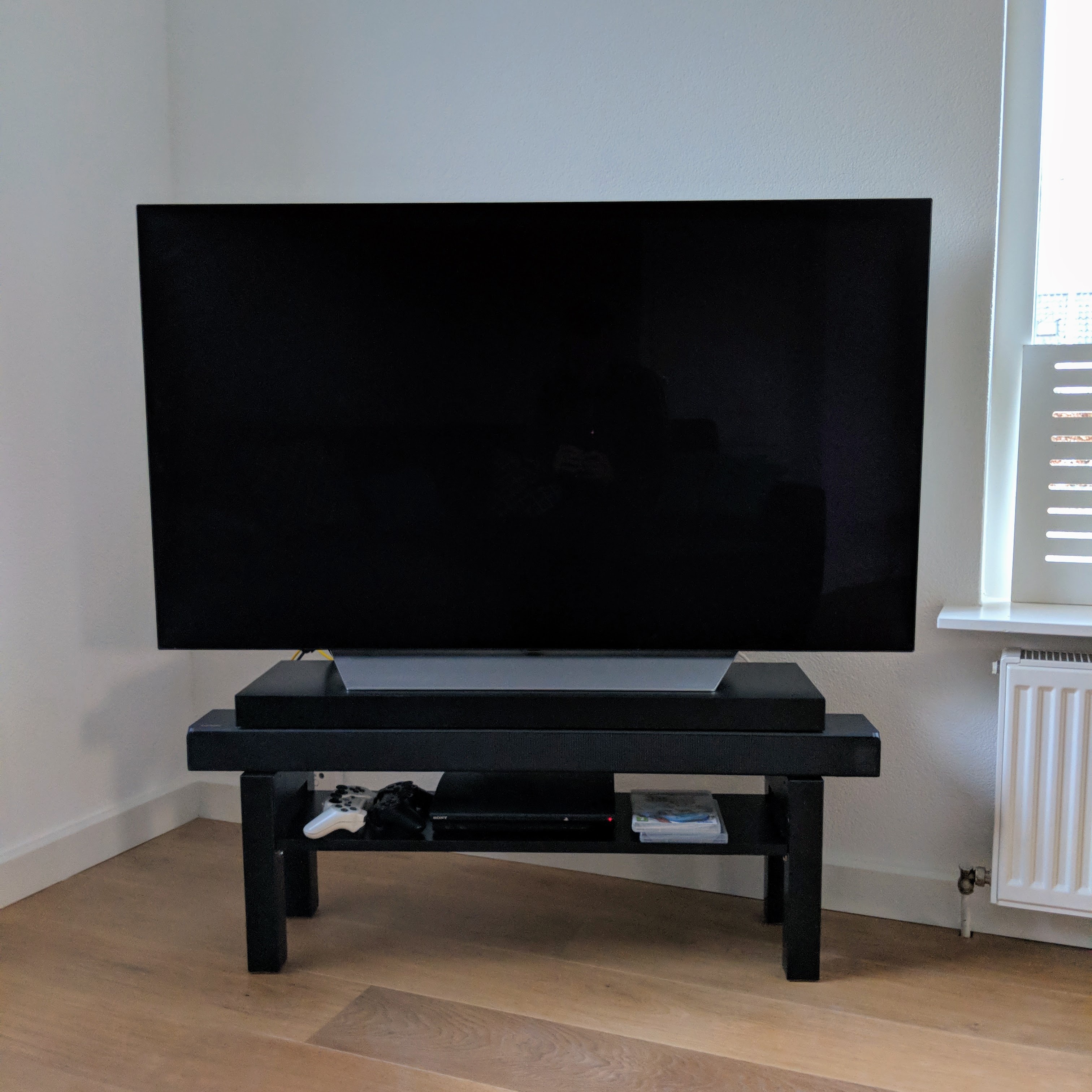 Verder is het TV meubel langzaam ook aan vernieuwing toe. Het heeft her en der wat beschadigingen en is doorgezakt van de tv die er ooit (voor we samen gingen wonen) op heeft gestaan.