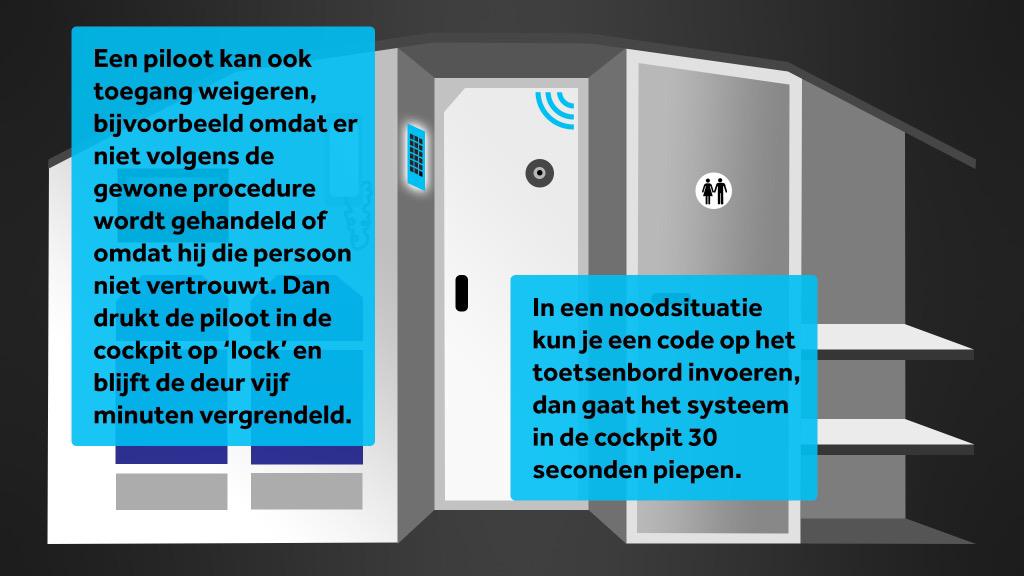 Perfect toch? Mocht je piloot dan door gijzelnemer worden bedreigd kan de zittende piloot besluiten de deur alsnog dicht te laten. Echter is er nooit over nagedacht aan een piloot die zelfmoord zou willen plegen. En dan kun je tijdelijk 2de man in de cockpit zetten maar dan is maar de vraag wie fysiek de sterkste is (of de slimste)