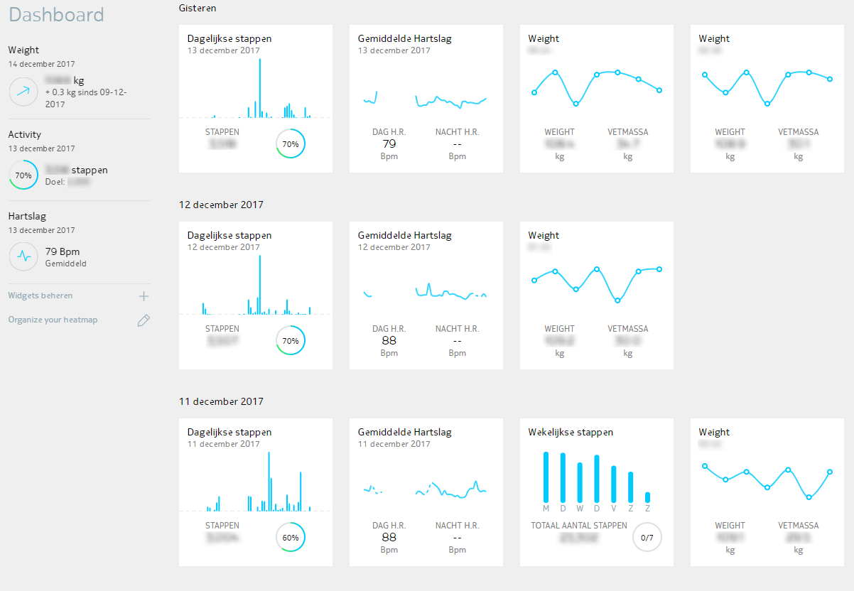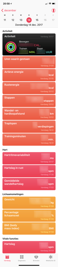 De hoeveelheid data die je dan zo op een dag bij elkaar schraapt is verbazingwekkend. Hartslag, ademhaling, stappen, gewicht, spiermassa, botmassa en ga zo maar door.