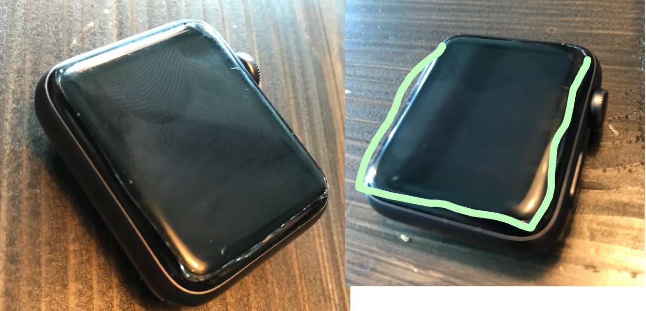 Ben met mijn watch tegen de muur aangekomen, en nu is het scherm gebarsten op precies de 3 zijkanten, behalve de bovenkant: