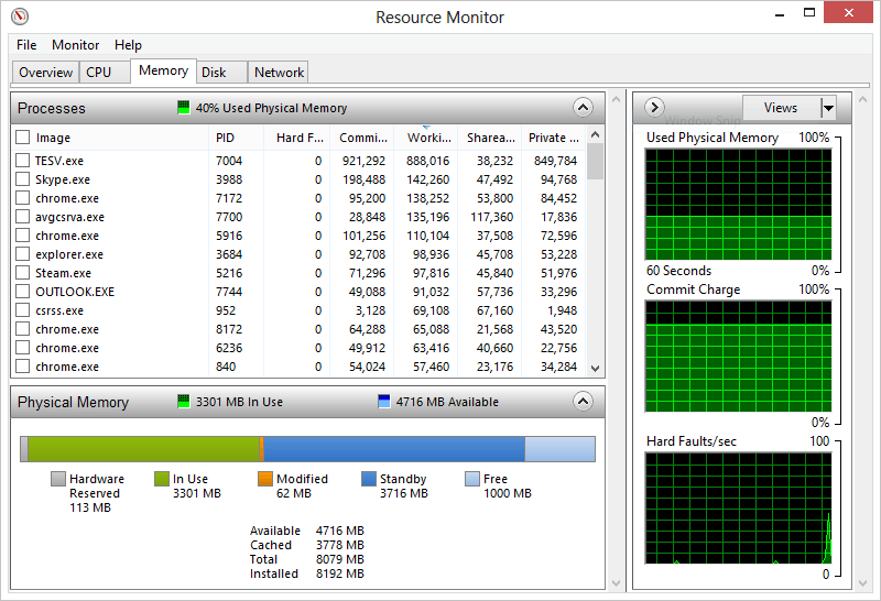 Ik heb laatst een goeie game pc gebouwd en windows 8.1 er op gezet van dreamspark maar nu komt het, Mijn ram ik heb 8GB RAM en dat loopt zo snel vol ik heb nog geen spel of iets aanstaan en hij loopt al naar voor 40% vol en als ik een game opstart na een 1 uur staat hij al op 70%, dus heb ik mijn pc geformateerd en helemaal op nieuw alles er op gezet maar nog stees hij loopt te snel vol de RAM.