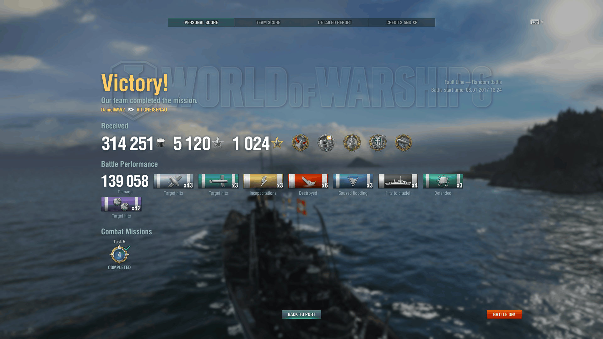 Zeker in het begin stooom ik snel vooruit onder dekking, eventueel DD wat steunen en dan U bocht en pas dan effectef tegen BB's beginnen door te slalommen. Je met wat pech krijg je 2-3 citadels en is het snelg edaan maar meestal gaat wel goed.DaniëlWW2 schreef op zondag 8 januari 2017 @ 14:54: