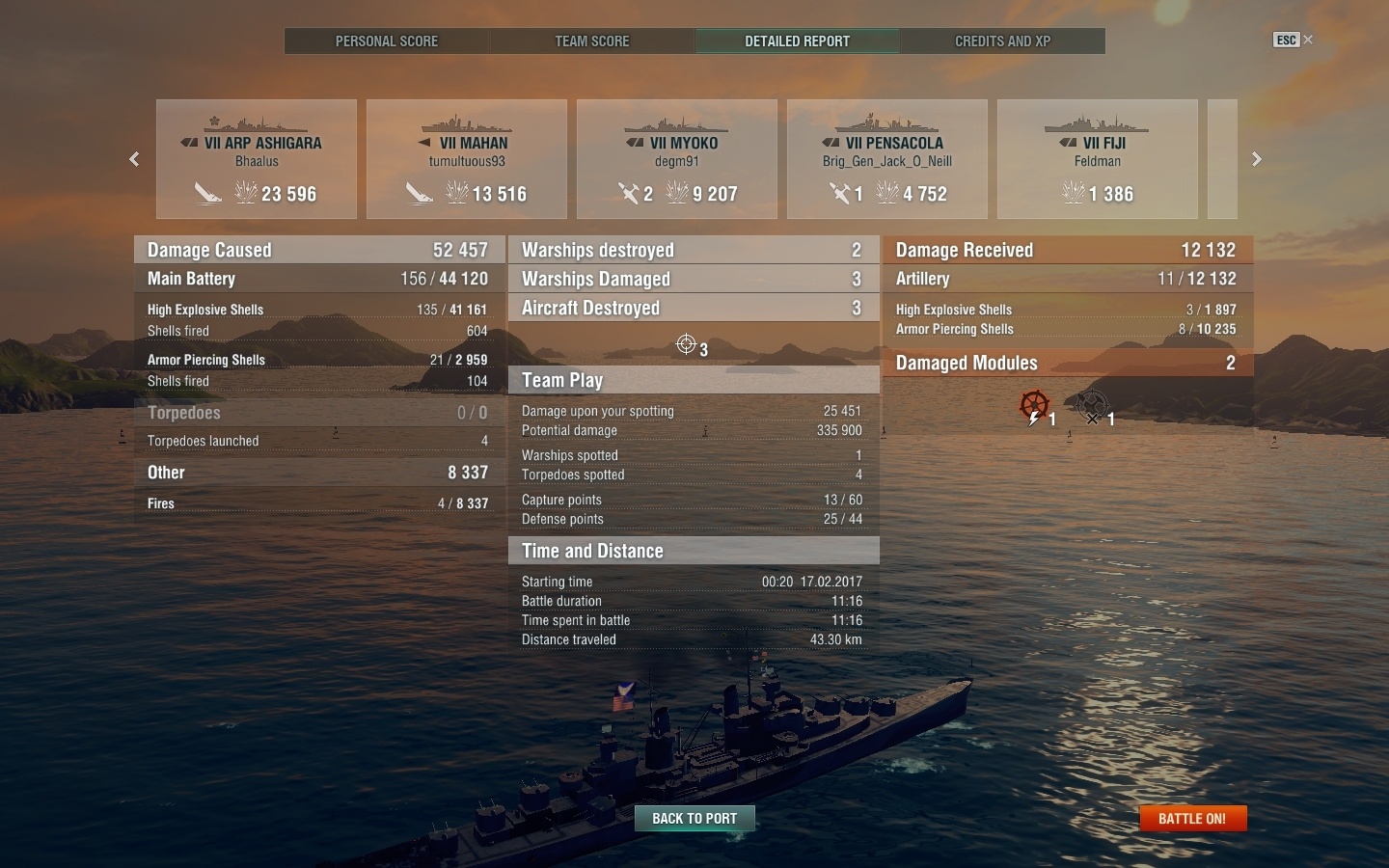 Uiteindelijk gedraaid en full salvo op de Nagato en gestopt met schieten vanwege mijn 9,6 km concealment. Dat werkte want ik had de cap bijna. Toen ik nog 0,5 km concealment op de Pensa had, zag hij mij. Net de cap gepakt. Toen hij mij spotten full salvo op de Pensa, maar toen wonnen we reeds op punten.