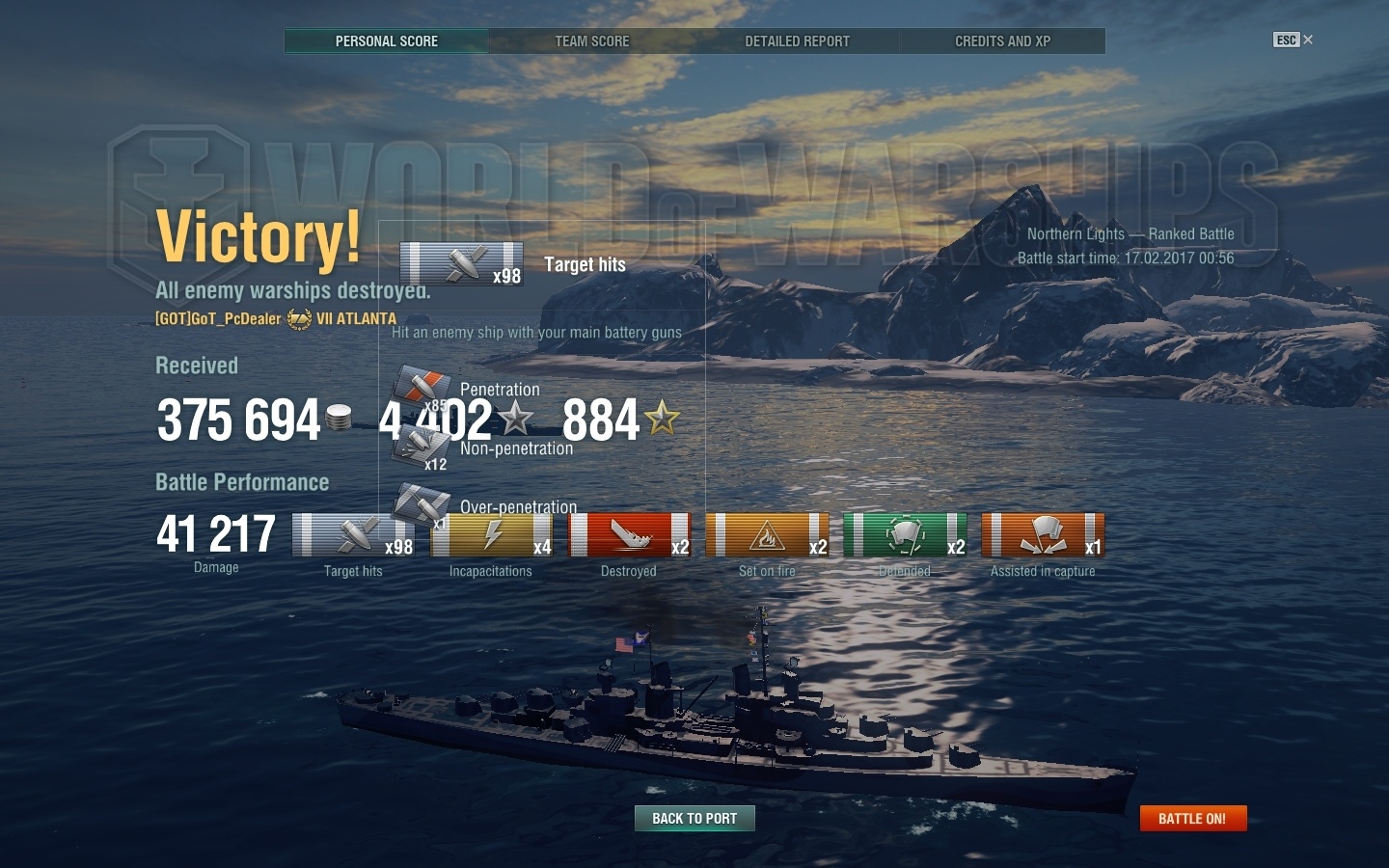 De berg gebruik je niet speciaal voor concealment maar juist voor Armor. De atlanta is gemaakt van papier en heeft gewoon een berg tussen zichzelf en de enemy nodig. Jij kan lekker over de berg heen schieten met de catapult launchers en zij kunnen niks! Als je dit goed speelt dan ga je pas merken hoe sterk de Atlanta is. Ook is de Atlanta de perfecte keus om DD"s te straffen. denk aan 5-6k damage salvo's per 4.5 seconde.PcDealer schreef op donderdag 16 februari 2017 @ 23:11: