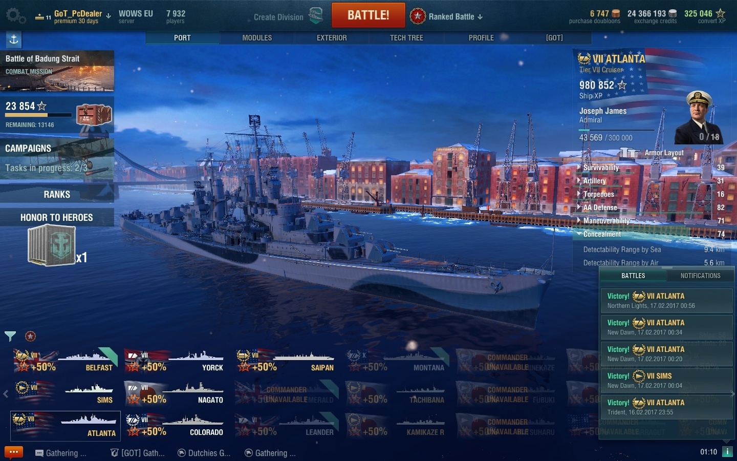 De metagame is helemaal verschoven door de Belfasts. Geen DD meer te bekennen bijna, zelfs al games gehad helemaal zonder dd. Rank 9 nu, gaat wel lekker. Mooi spel blijft het toch.