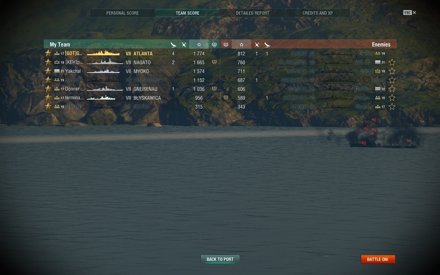 Kutuzov en atago waren ook beter dan elke andere cruiser, lo yang was 1 vd zoniet de beste DD enkel BB's waar duidelijk bismarck de beste was . (cv's zie ik nu amper)