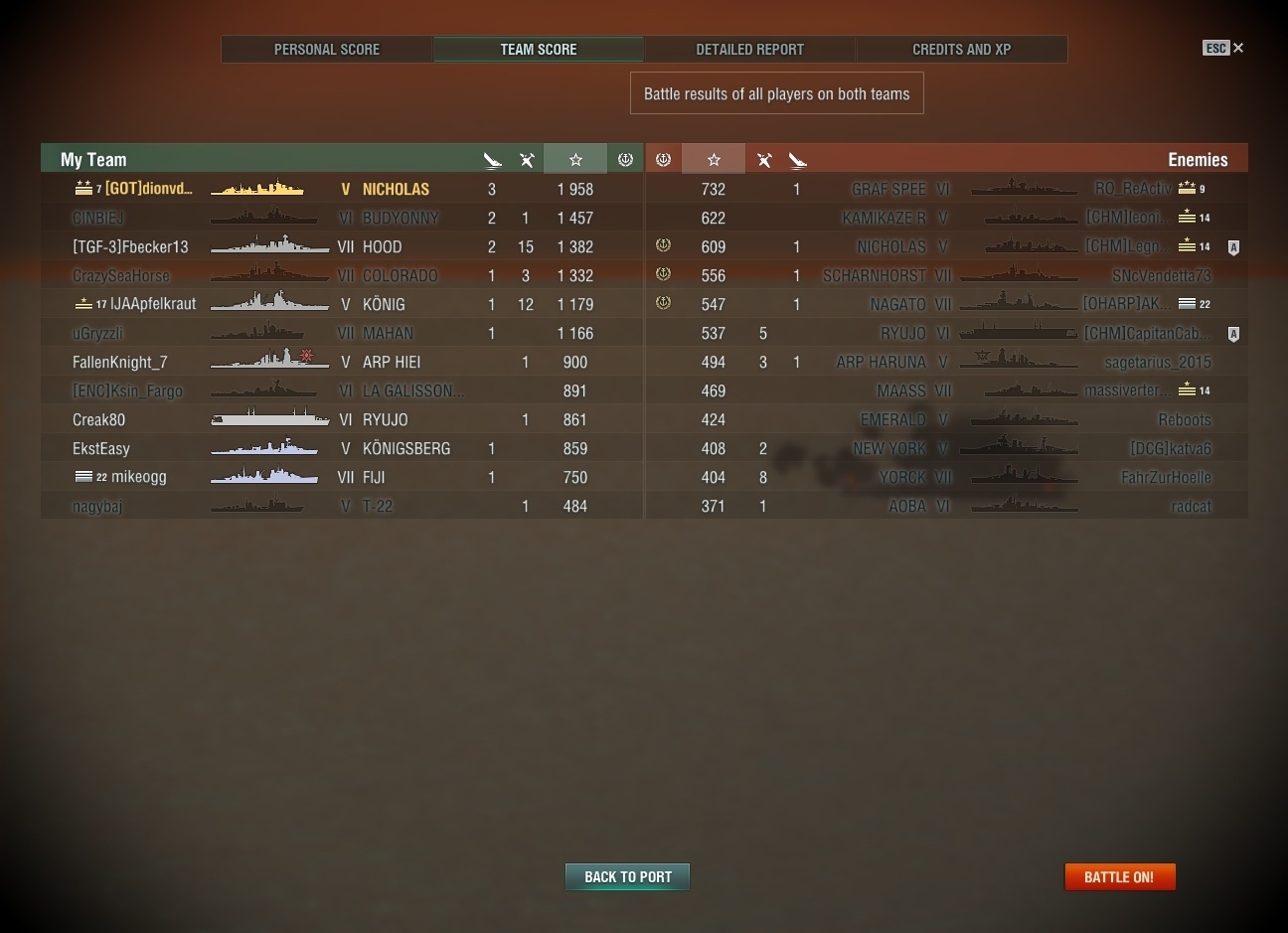 wil je graag helpen met het verbeteren van je speelstijl, weet niet of je al in het game channel "Gathering of Warships" zit, maar hier zitten vele mede tweakers, kunnen een keer in Division gamen om tips en tricks te delen.Jammer dat je geen credits krijgt voor het smoken van een ally die het anders niet haalt. Vaak is het ook wel duidelijk wat ik verkeerd deed als ik dood ging. Zoals een eiland rammen. Of een afslag nemen die iets te optimistisch was, gespot worden door andere DD, en dat ik (en de vijandelijke DD) vervolgens door zo ongeveer iedereen onder vuur worden genomen.