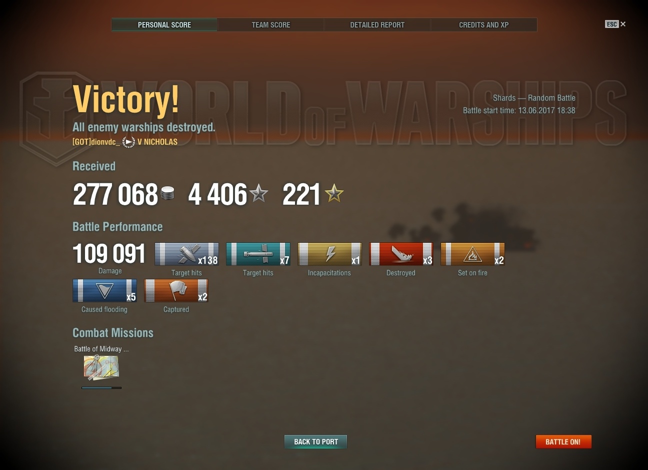 Nieuwe missie is makkelijker dan de vorige. Heb al meerdere wins met 4 en 5 sterren, en twee x Will to Win gescoord. En dat voor een relatieve noob in Wows