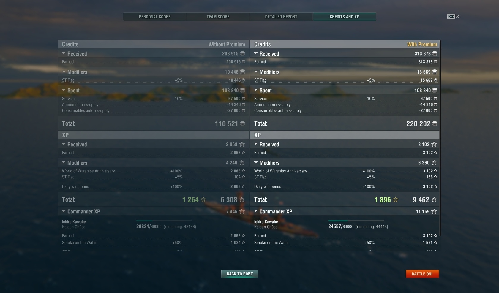 De afgelopen dagen ben ik na een tijdje zonder internet (en dus WoWs) weer verder gegaan met de Z-23 grind, maar de smoke detection aanpassingen hebben dat schip geen goed gedaan. Door het hoge kaliber van de kanonnen wordt je al op 3,4 km gespot in / door rook. Omdat je hydro maar 4,4 km range heeft, heb je dus maar een km speling als je een DD uit z'n rook wilt jagen (toch een van de voordelen van de Duitse DD's). De Z-46 heeft én langere hydro range én lagere detection in rook, dus misschien ga ik er maar wat free xp tegenaan gooien.