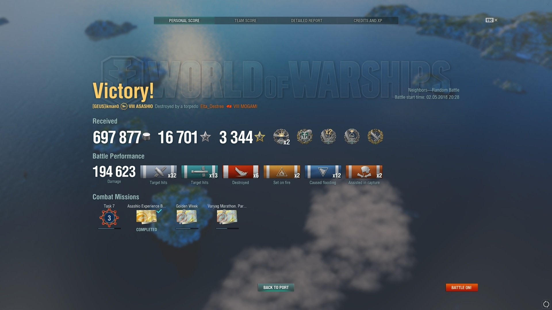 Zoals meeste hier weten, speel ik primair DDs. Heb op tier 8 dan ook 3 DDs, 1 cruiser en 1 BB. En voor ranked ben ik nu meer en meer de cruiser (een New Orleans zelf, dus enige consistente is dat ik van elke kant gecitadelled word) en BB (Bismarck) aan het spelen.Zertaxka schreef op maandag 30 april 2018 @ 12:01:
