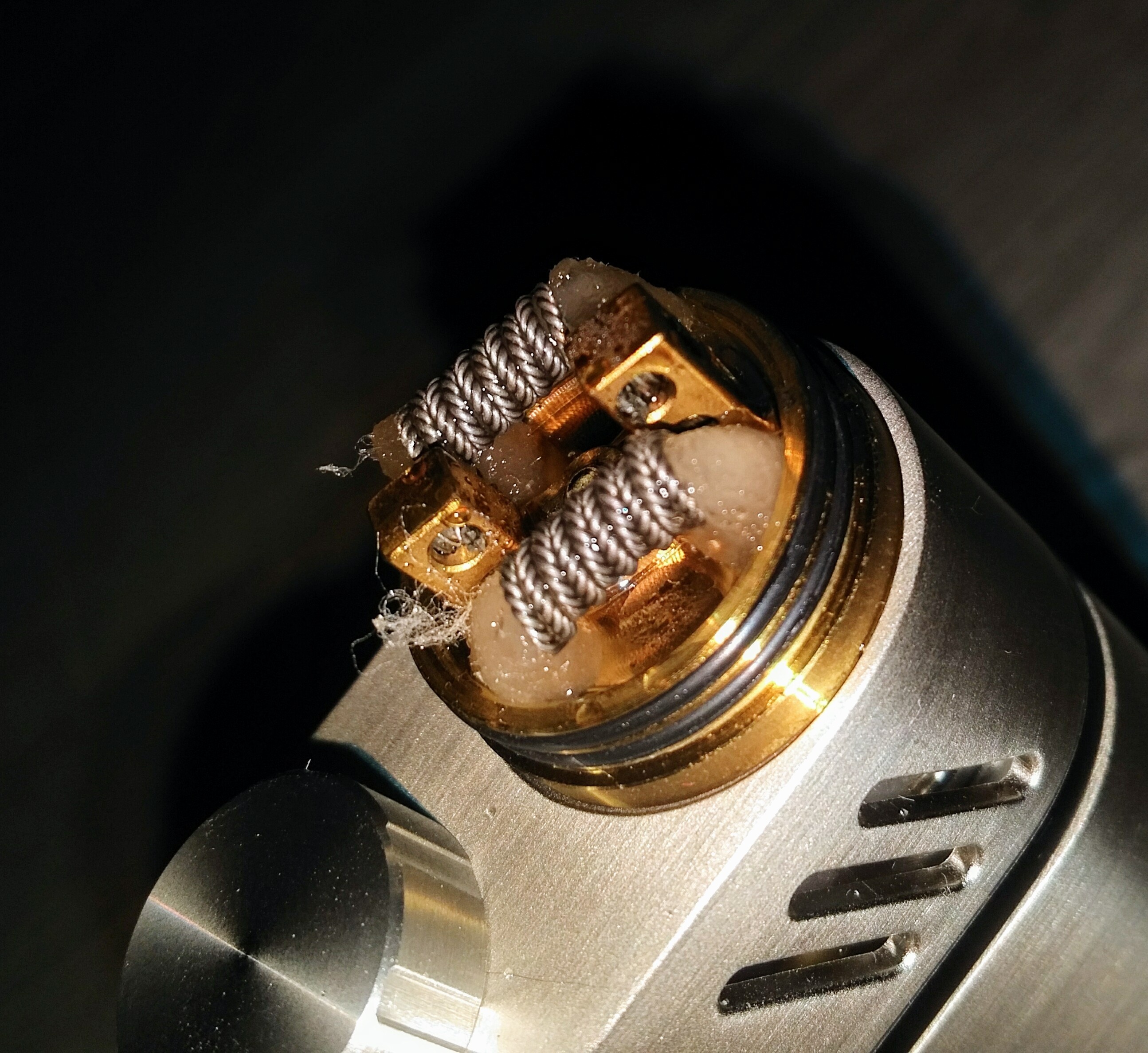 Ik begrijp dat je inmiddels voor een RDTA bent gegaan, een Avocado. Echt een prima ding, wel listig om te wicken en als je die fill-port niet goed gebruikt wordt het een grote kliederboel. Doe jezelf een plezier en doe er een relatief hoog-weerstand spoeltje/coil in en block één kant af. Anders wordt de boel gewoonweg niet snel genoeg warm om er plezier van te hebben.