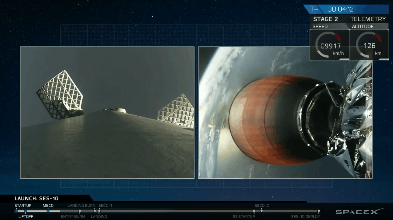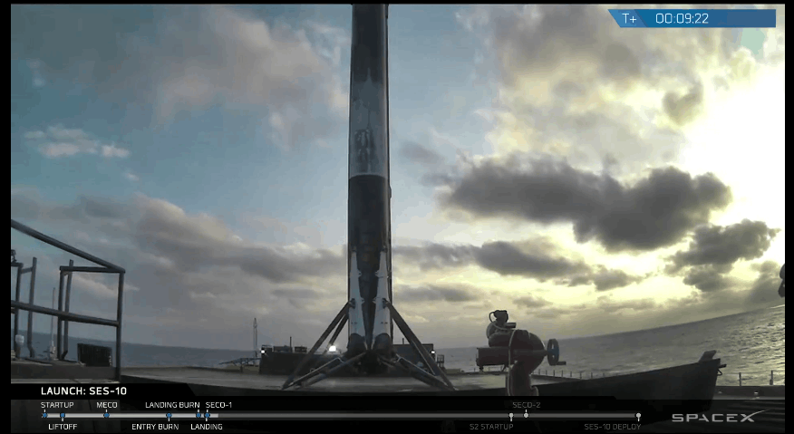 Falcon 9's first stage for the SES-10 mission previously supported the successful CRS-8 mission in April 2016.