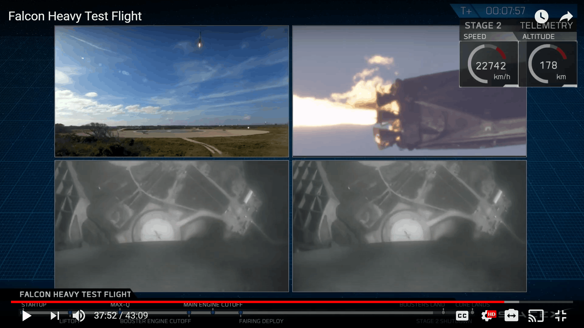 De fairing gaat eraf als hij de atmosfeer uit is. Bij de Falcon9 duurt dat 3 tot 3,5 minuut.almightyarjen schreef op maandag 5 februari 2018 @ 19:52: