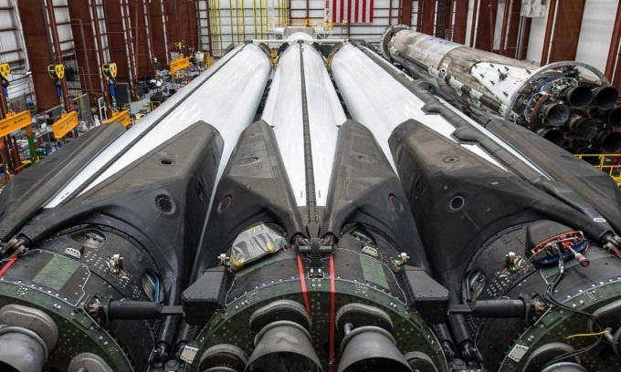 De raket ziet er wat anders uit dan de Falcon Heavy van vorig jaar. Zijn dit nou drie block 5 boosters?