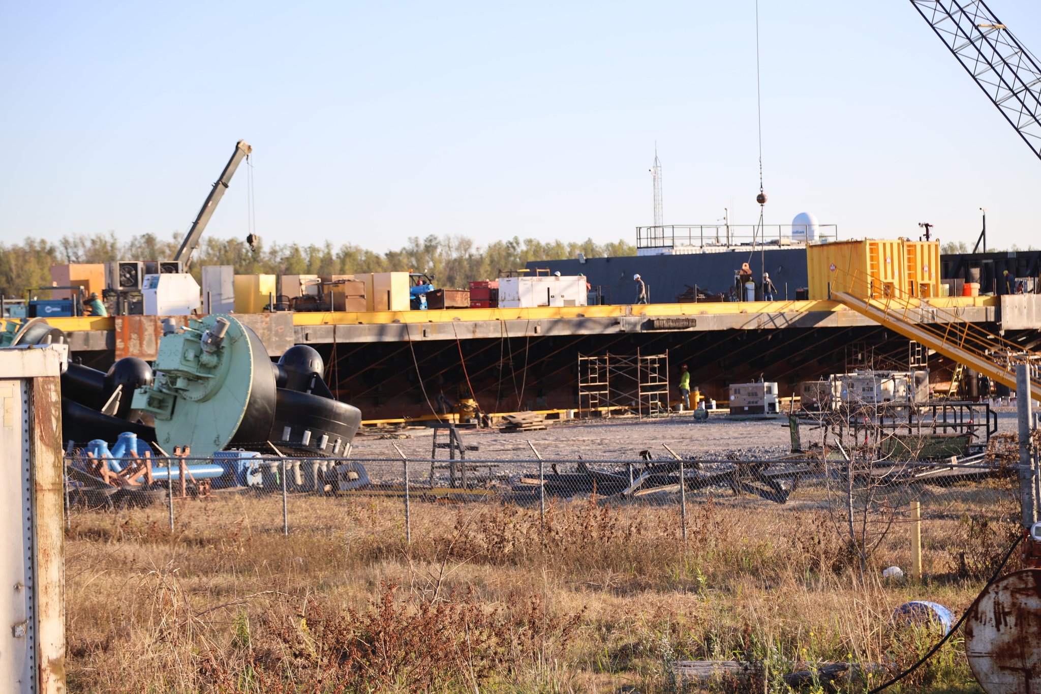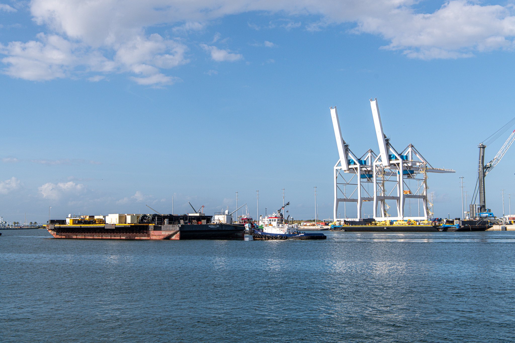 Uhh...wat zien we hier? Rechts in beeld zie ik een van de drone ships van SpaceX. Dat ding links denk ik ook. Al lijkt het alsof er iets anders op verscheept wordt. Ik mis wat context. Of heb je deze foto zelf gemaakt en ben je nu in de VS en ga je een F9 lancering bijwonen volgende week?