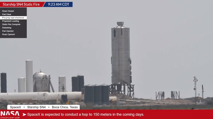 YouTube: Starship SN4 static fire testing LIVE from Boca Chica
