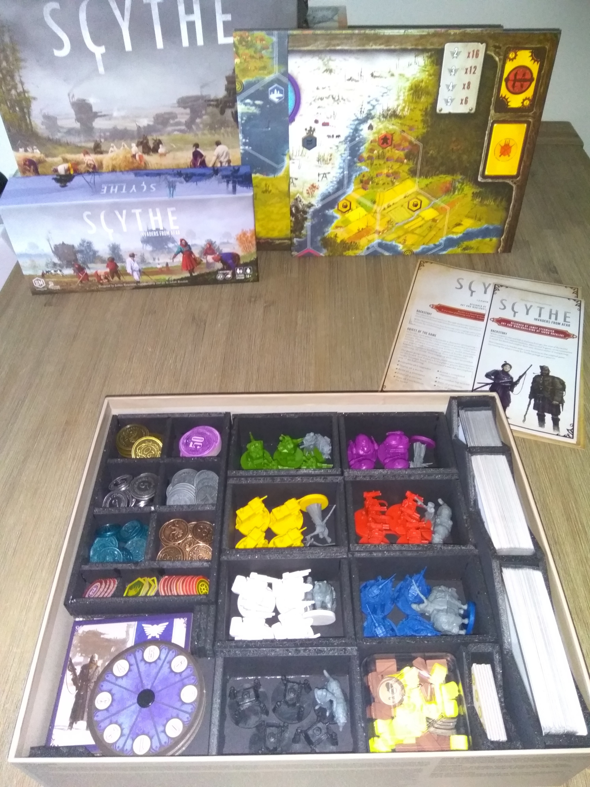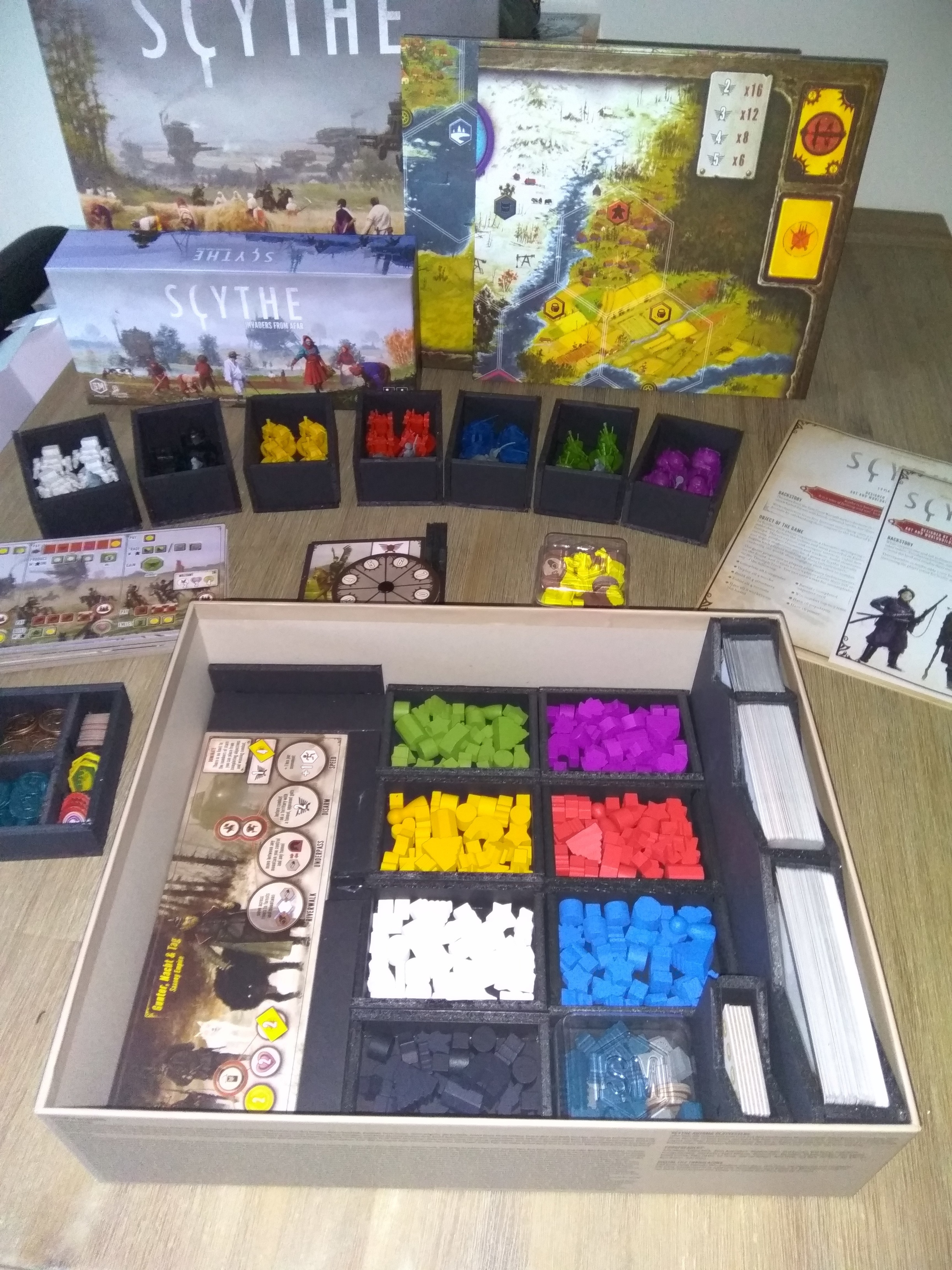 PS. Op deze wijze passen Scythe + Uitbreiding en board extension in de doos.
