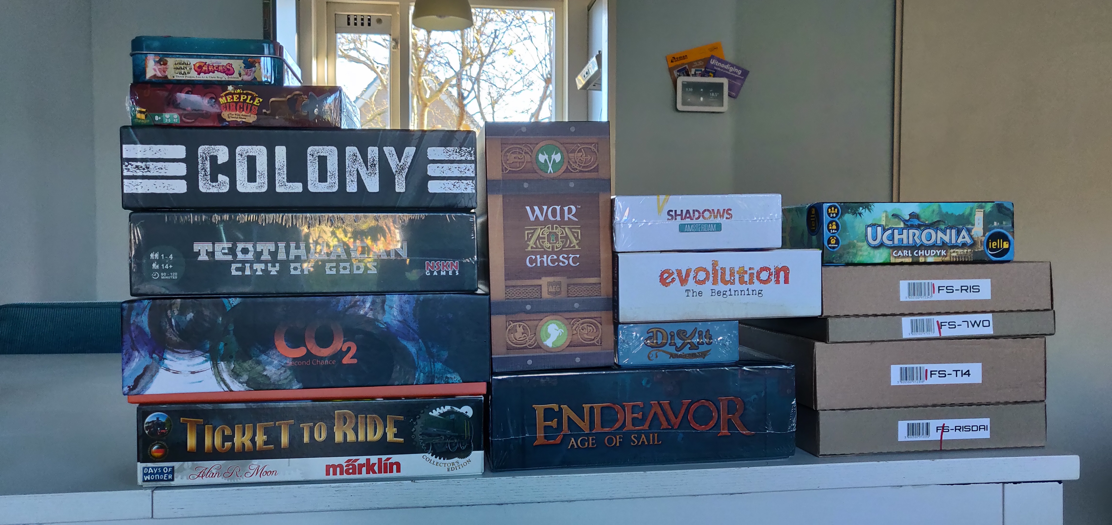 Hierna de kickstarters opgehaald van CO2: Second Chance en Endeavor. Deze waren als groepspledge georganiseerd. Ook het ophalen verliep erg soepel, even moeten wachten, maar dat hoort erbij. Tijdens het wachten even kennis gemaakt met Marlon van A Boardgame Life en gezelligd wat gekletst. Leuk om even kennis gemaakt te hebben met degene die achter het blog zit welke ik regelmatig lees!