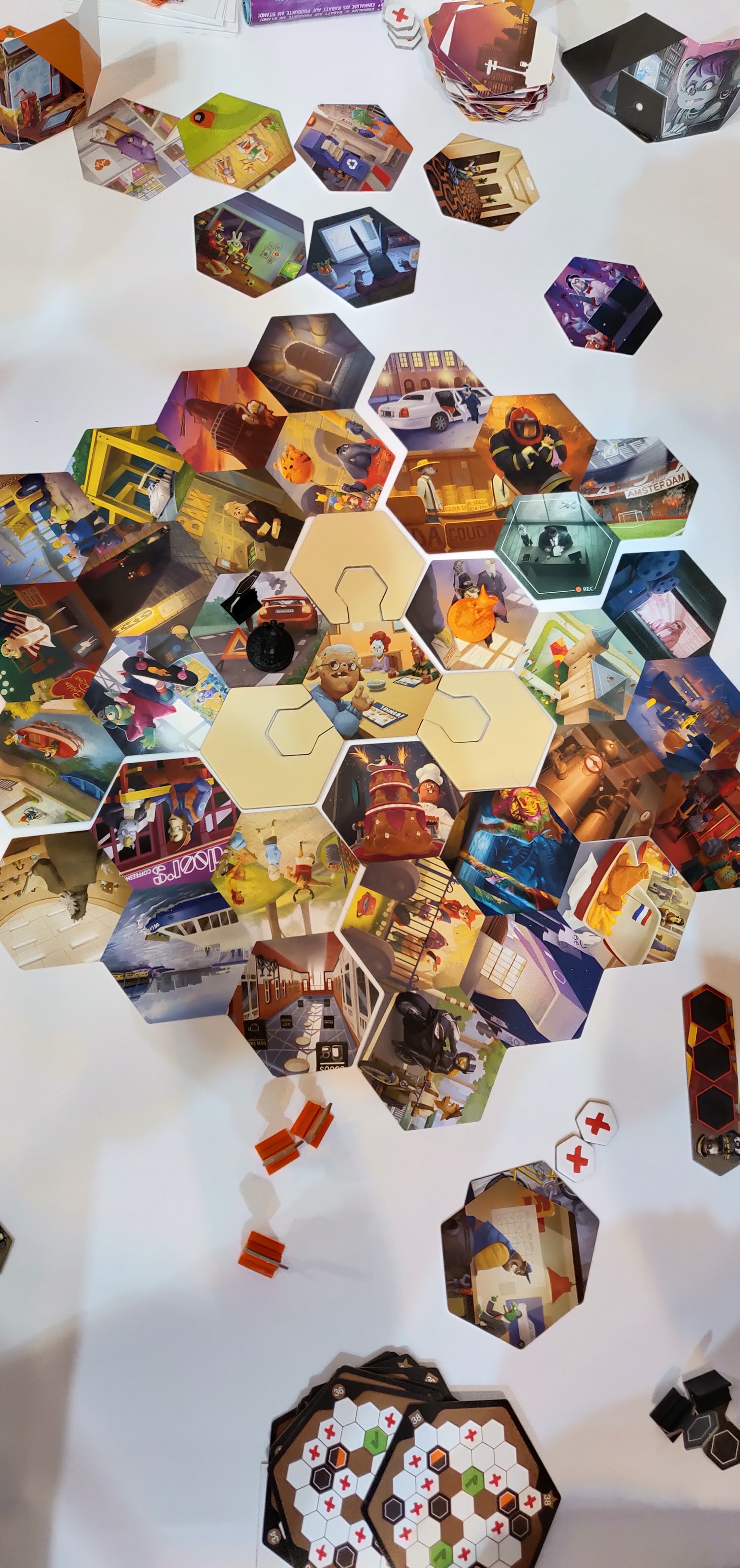 In ieder geval genoeg gespeeld. Gestart met Chronicles of Crime, deze demo had ik van tevoren gereserveerd. Een erg leuke deduction game met als toevoeging een app welke je moet gebruiken om kaarten te scannen en zo een zaak op te lossen. Je speelt namelijk als detectives en moet een zaak oplossen met elkaar. Uiteindelijk wel de zaak goed opgelost en de dader gepakt, alleen het verkeerde moordwapen. Een vriend van me heeft hem aangeschaft, dus deze gaan we zeker vaker spelen.