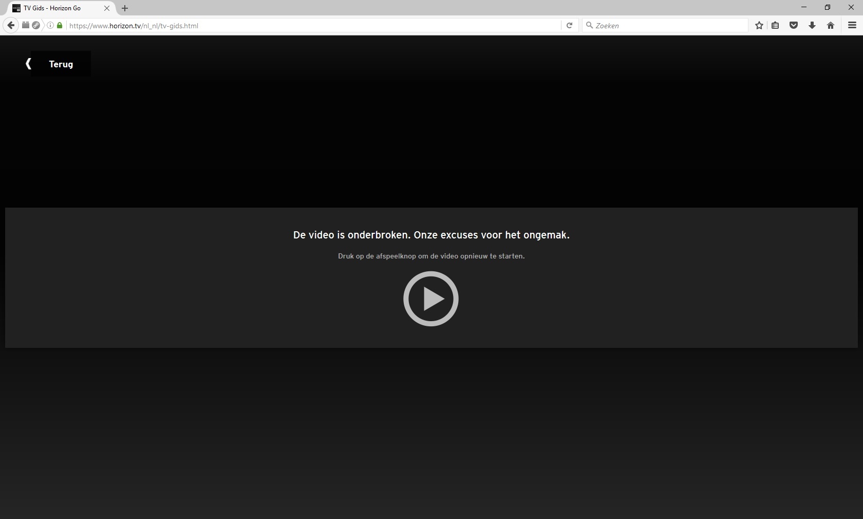 Iets anders. Enige tijd geleden zei ik dat Horizon Go via internet niet meer werkt bij mij (Telfort glasvezel) met mijn vriendin 's inlog. Heb het vanochtend getest bij m'n pa (Ziggo) en dat werkte wel, dus zou het kunnen dat ik gebanned ben of dat het alleen maar werkt via een Ziggoo IP adres? Zou het heel raar vinden want de bedoeling van Horizon Go is toch juist dat je het altijd en overal moet kunnen gebruiken? Behalve buitenland dan. Ik krijg de melding "Deze video is onderbroken. Excuses voor het ongemak." of iets in die trant.