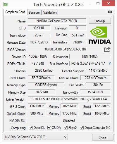 Ik heb een MSI GeForce GTX 780Ti Gamin 3G. Ik heb Unigine Heaven 4.0 al eens opnieuw geïnstalleerd maar werkt ook niet. Systeem herstart werkt ook niet.