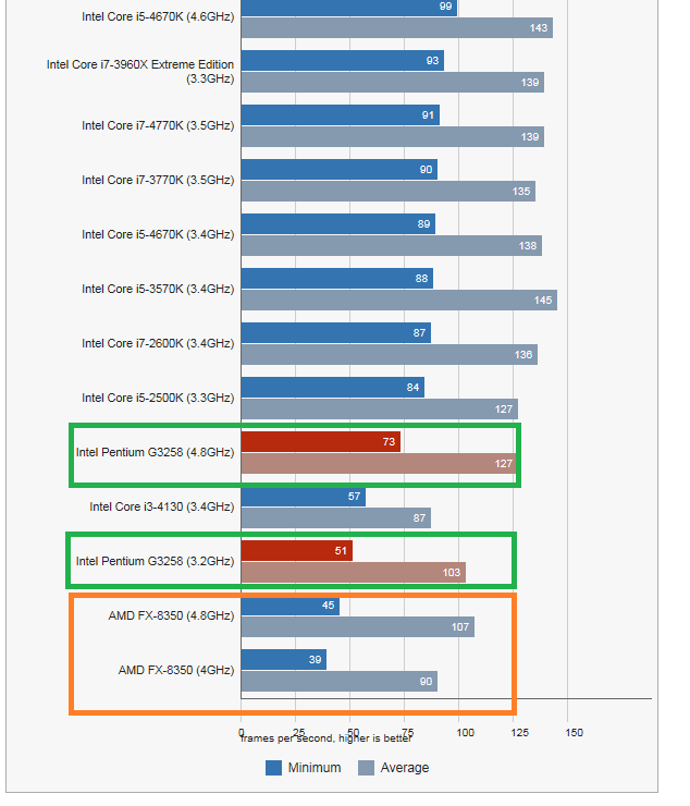 (nu zul je natuurlijk nooit een athlon met een Titan X combineren en ultra settings eruit proberen te persen, op high settings (of in ieder geval den CPU intensieve) doet de athlon het nog wat beter)