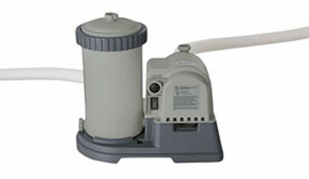 als je de pomp op de grond zet (gelijk met bodem zwembad) kan een Cartridge fiterpomp met uitzondering van wellicht 1 of 2 .. hebben maximum opvoerhoogte van 1m je kan hier (eigen ervaring)