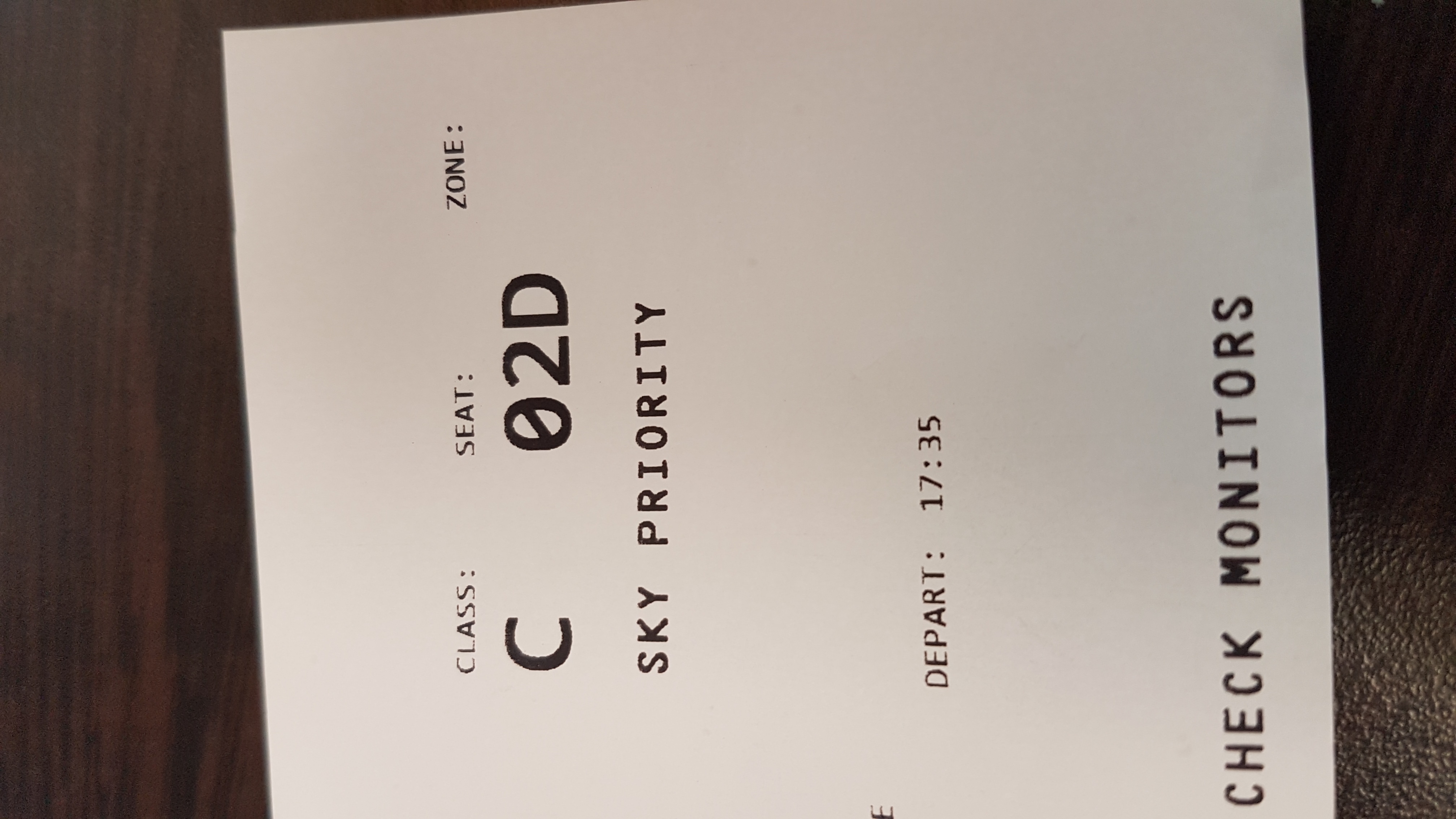 Ik zit even uit complete verveling naar mijn boardingpass te kijken (4 uur in de lounge op Birmingham Airport doet wat met je)